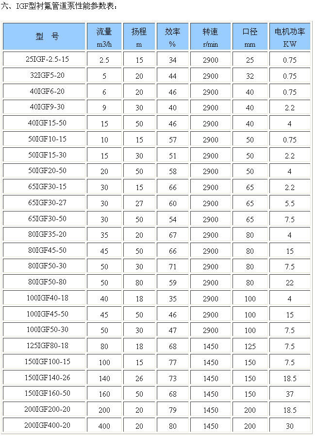 IGF型襯氟管道泵 更多信息