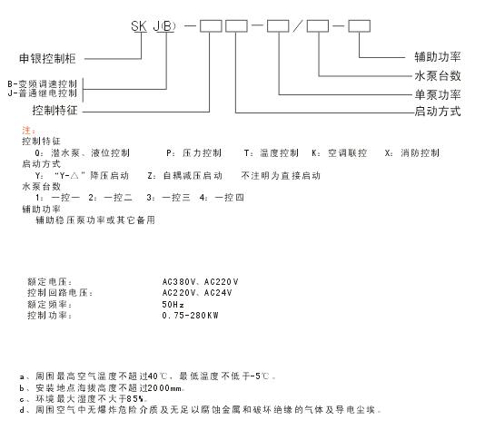 SKJ系列水泵控制柜可以根據用戶和設計的要求,設計了潛水泵、液位控制型、壓力控制型、消防專用控制型、溫度控制型和空調聯控型,各型號分別具有主回路短路、缺相和過載保護,并根據功率的大小和設計的要求,可分為直接啟動、自耦降壓啟動和“Y-△”啟動。