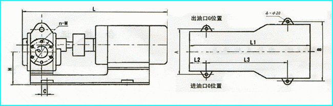 2CYKCB齒輪式輸油泵外形安裝尺寸圖: