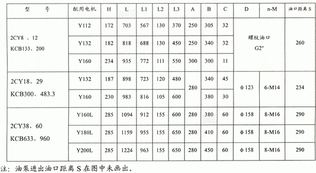 2CYKCB齒輪式輸油泵外形安裝尺寸表: