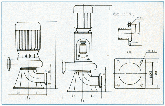 導航:回首頁---當前位置---水泵產品內容頁補充頁 >> LW型直立式無堵塞排污泵外形安裝尺寸