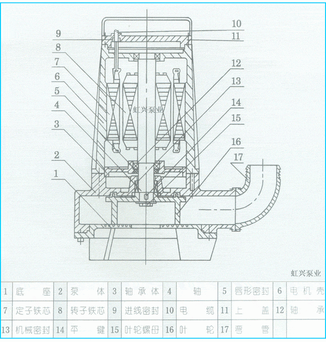 S、AV型潛水式排污泵結構圖: