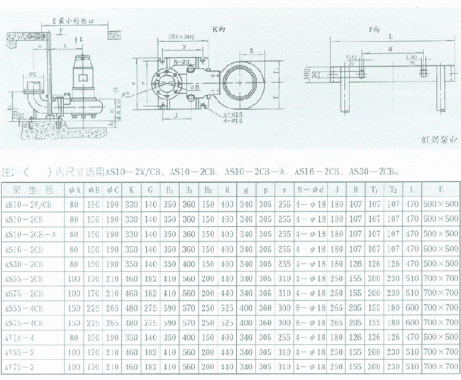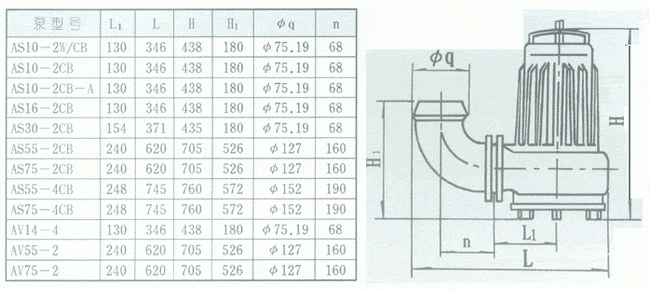 導航:回首頁---當前位置---水泵產品內容頁補充頁 >> S、AV型潛水式排污泵外形安裝尺寸 |