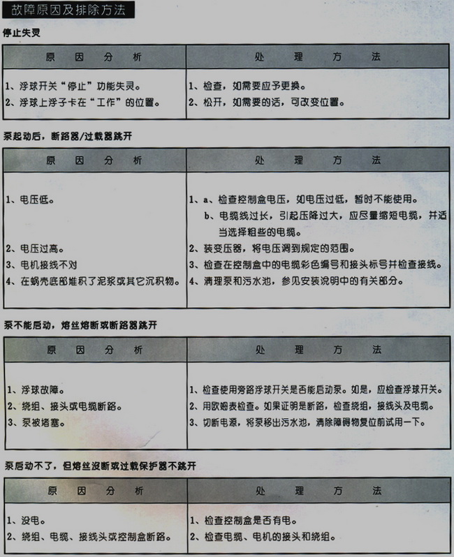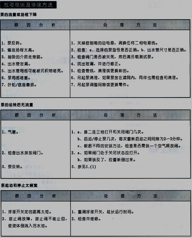 S、AV型潛水式排污泵故障分析及排除方法