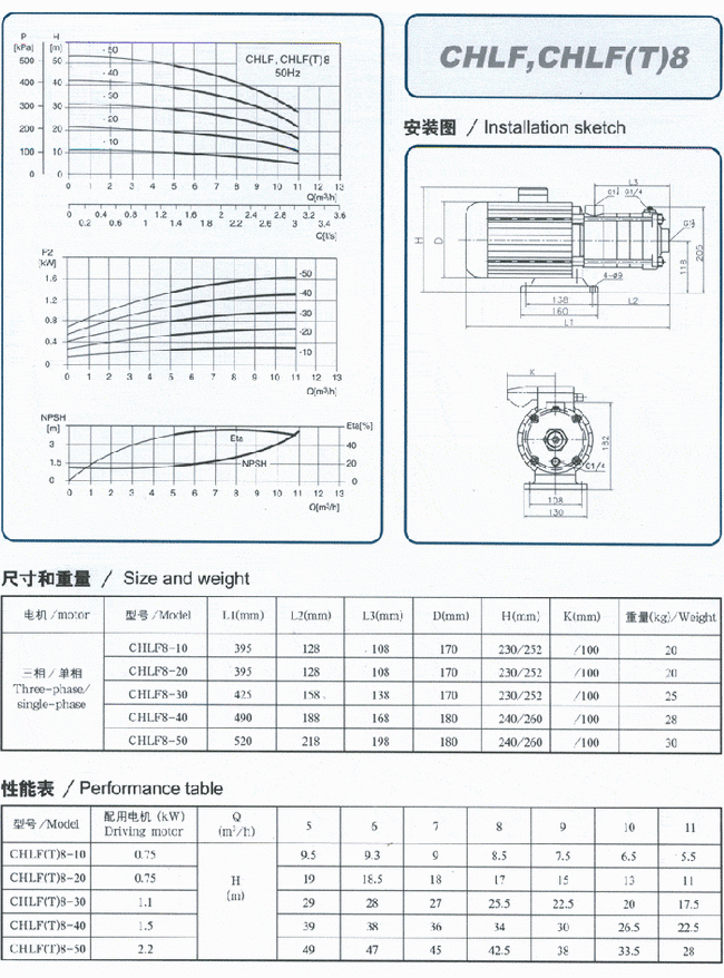 導(dǎo)航:回首頁---當(dāng)前位置---水泵產(chǎn)品內(nèi)容頁補(bǔ)充頁 >> CHLF(T)輕型段式多級(jí)離心泵性能參數(shù)表 |