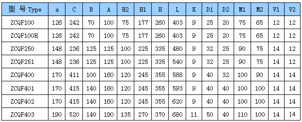 ![]() ZCQF型四氟自吸磁力泵外形安裝尺寸表: ![]()