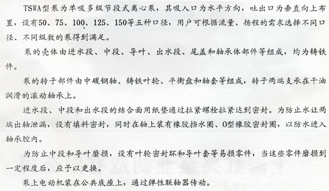 TSWA型臥式多級離心泵|結構的說明
