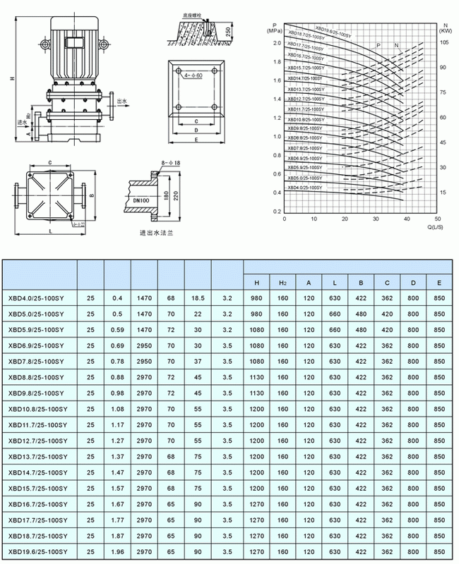 導航:回首頁---當前位置---水泵產(chǎn)品內容頁補充頁 >> XBD立式雙級(多級)消防泵性能參數(shù)(3)