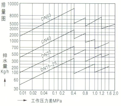 CS45H自由半浮球式蒸汽疏水閥性能 CS45H自由半浮球式蒸汽疏水閥曲線圖