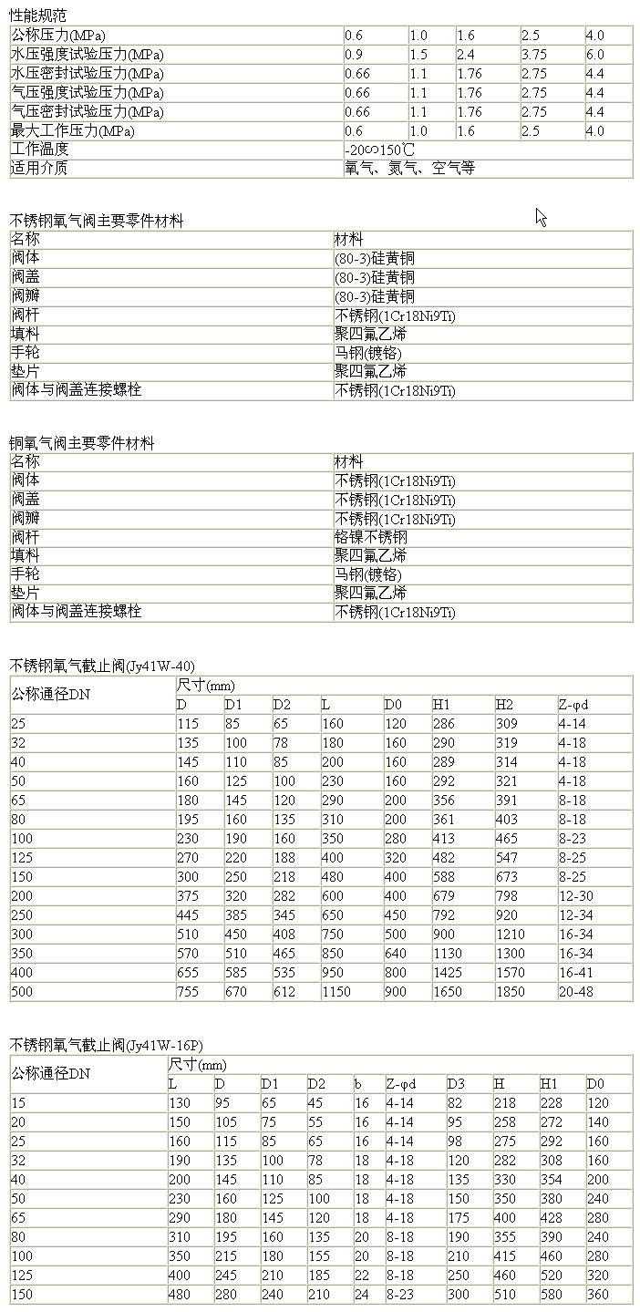 1、本產品系列特殊設計的不銹鋼或銅合金截止閥,主要用于氧壓機加壓后的管道。