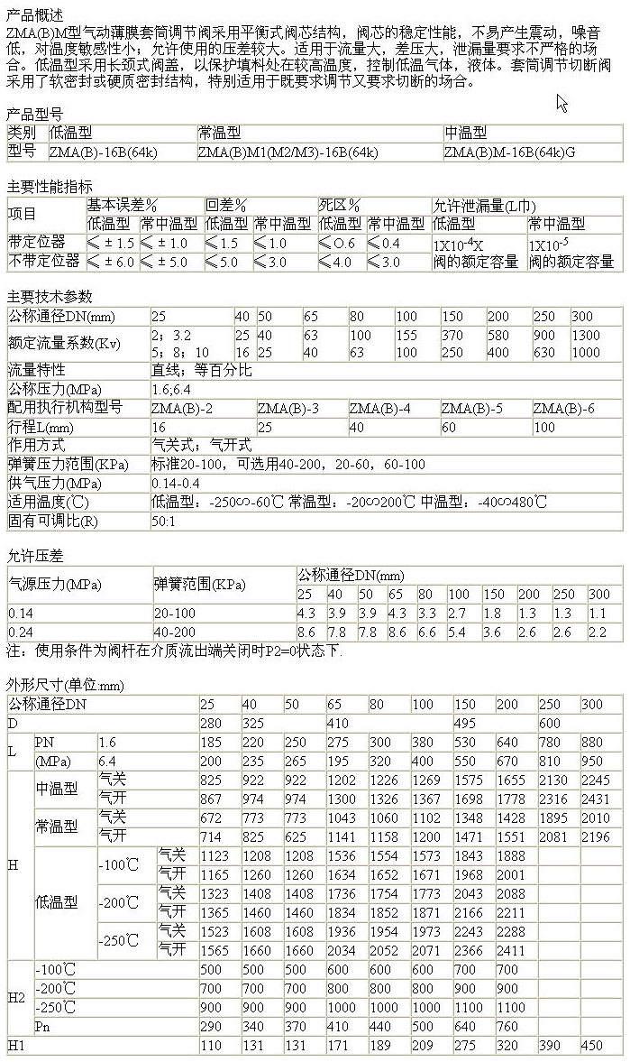 導航:回首頁---當前位置---閥門產品內容頁 >> ZMA(B)M型氣動薄膜低、常、中溫套筒調節閥_ZMA(B)M型氣動薄膜低、常、中溫套筒調節閥價格_報價_CAD圖紙 |